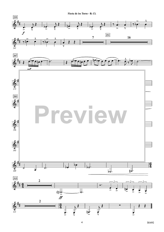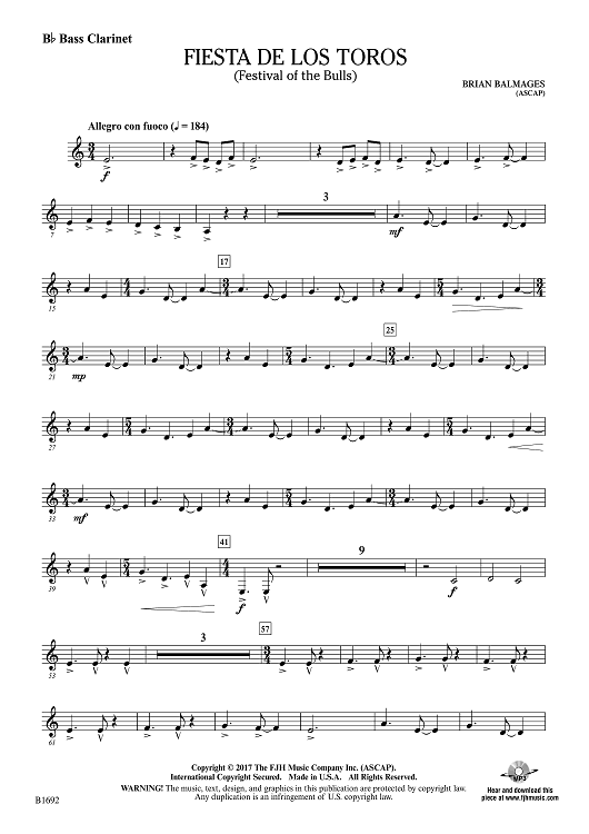Digital Sheet Music for Fiesta de los Toros - Bb Bass Clarinet by Brian Balmages scored for Concert Band; id:510301