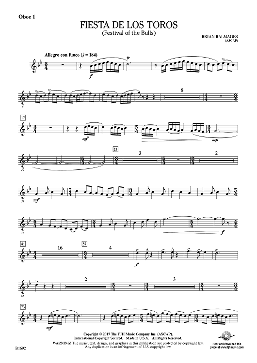 "Fiesta de los Toros - Oboe 1" Sheet Music by Brian Balmages