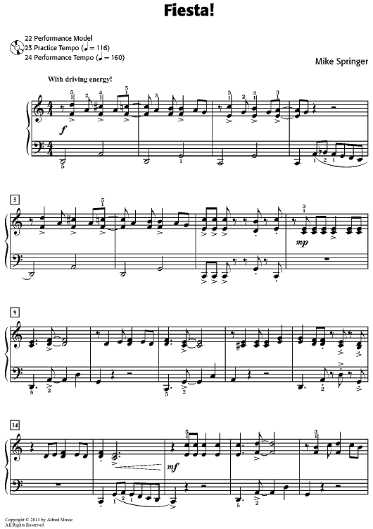 Digital Sheet Music for Fiesta! by Mike Springer scored for Piano Solo; id:498180