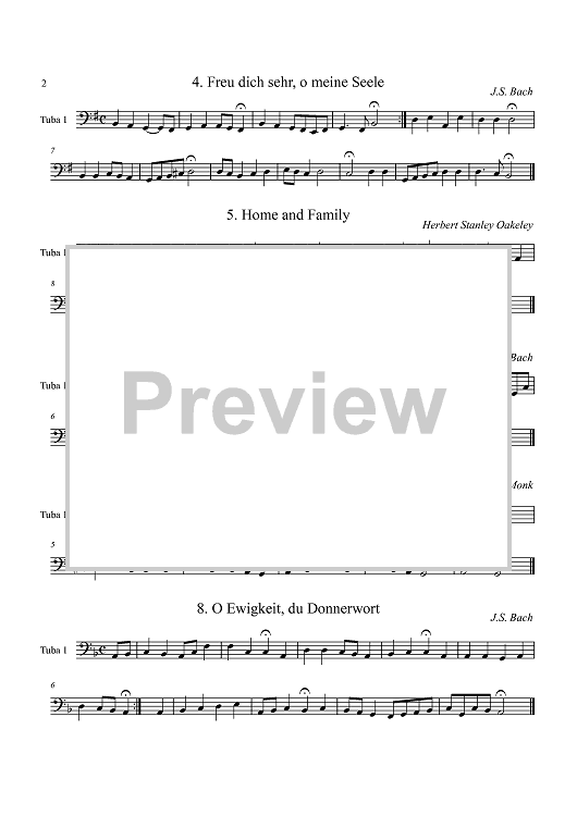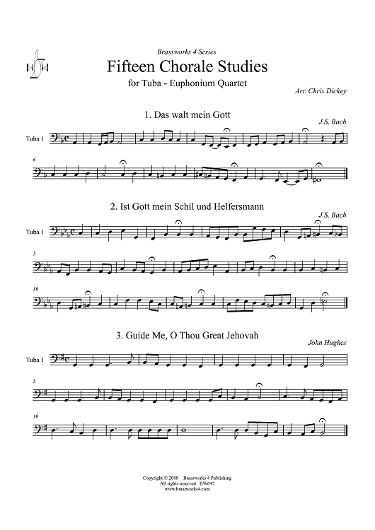 Digital Sheet Music for Fifteen Chorale Studies - Tuba 1 by Johann Sebastian Bach, Chris Dickey scored for Tuba Quartet; id:411255