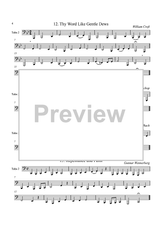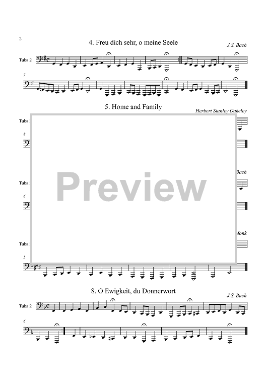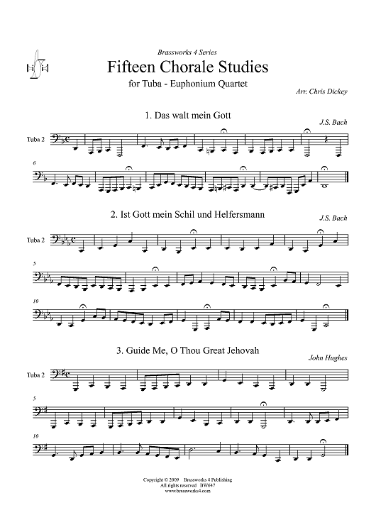 Digital Sheet Music for Fifteen Chorale Studies - Tuba 2 by Johann Sebastian Bach, Chris Dickey scored for Tuba Quartet; id:411256