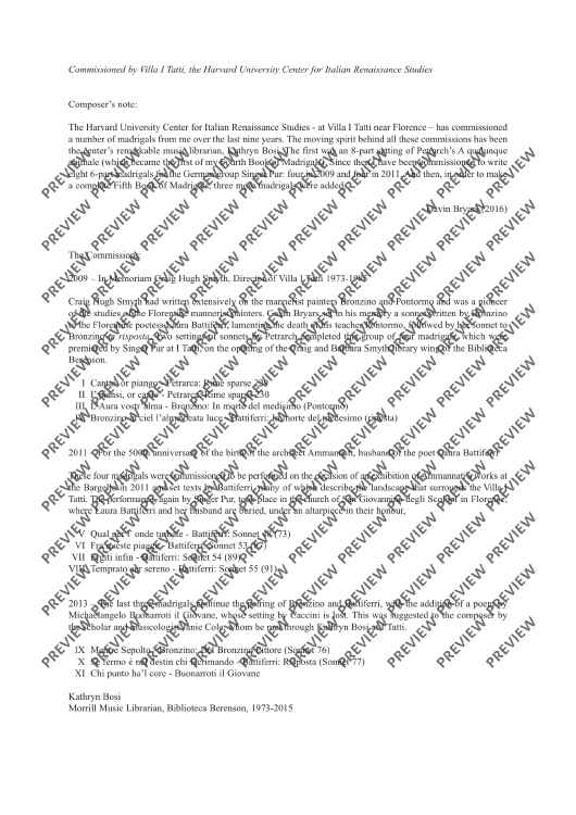 "Fifth Book of Madrigals ("I Tatti") - Choral Score" Sheet Music by Gavin Bryars