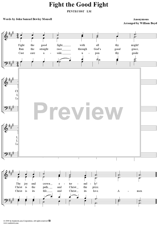 Digital Sheet Music for Fight the Good Fight by William Boyd scored for Four-part Mixed Chorus; id:274937