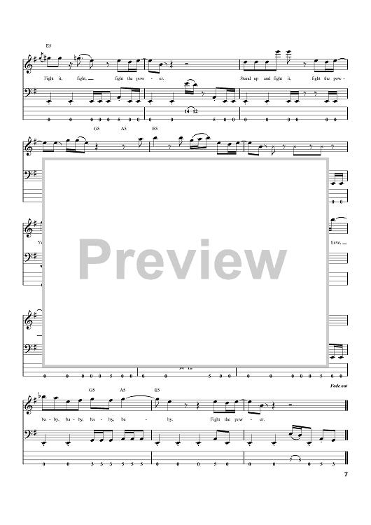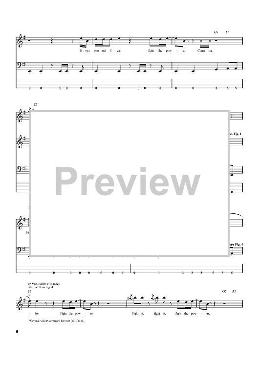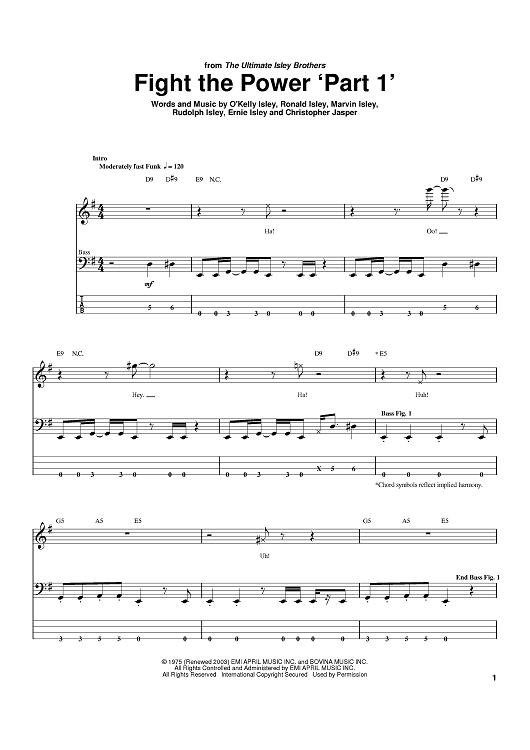 Digital Sheet Music for Fight The Power 'Part 1' by The Isley Brothers, O'Kelly Isley, Jr., Ronald Isley, Rudolph Bernard Isley, Ernie Isley, Marvin Isley, Chris Jasper scored for Bass Tab; id:390131