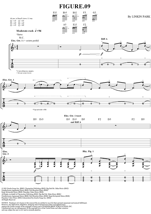 Digital Sheet Music for Figure.09 by Linkin Park scored for Guitar Tab/Vocal; id:297396