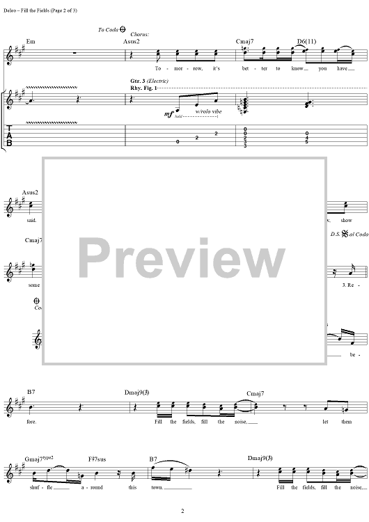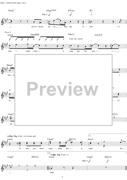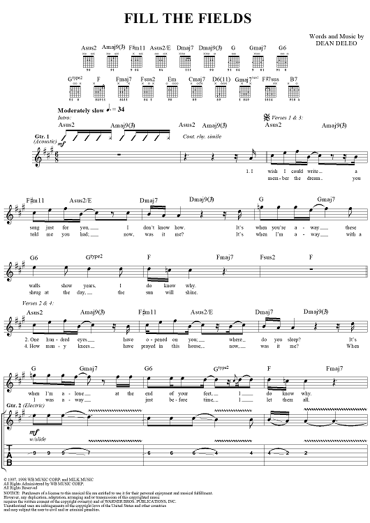 Digital Sheet Music for Fill the Fields by Dean DeLeo, Talk Show scored for Guitar Tab/Vocal; id:120124