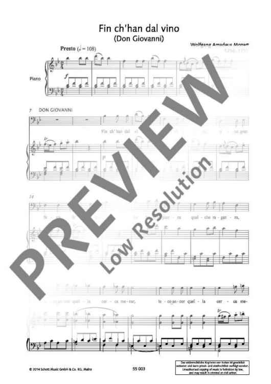 Digital Sheet Music for Fin ch'han dal vino by Wolfgang Amadeus Mozart scored for Baritone And Piano; id:484867