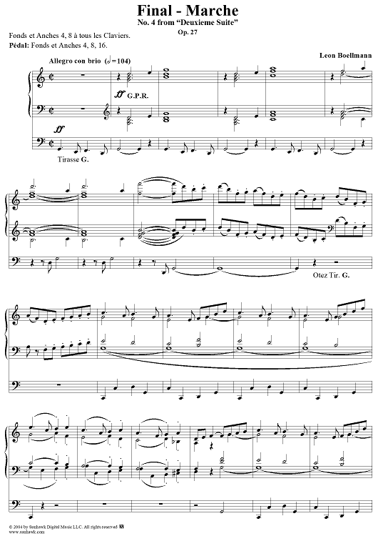 Digital Sheet Music for Final - Marche, No. 4 from "Deuxième Suite", Op. 27 by Leon Boëllmann scored for Organ Solo; id:304032