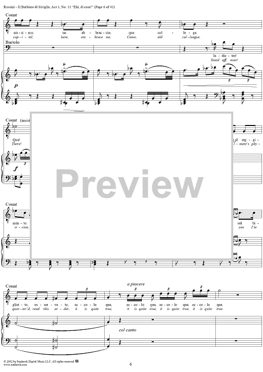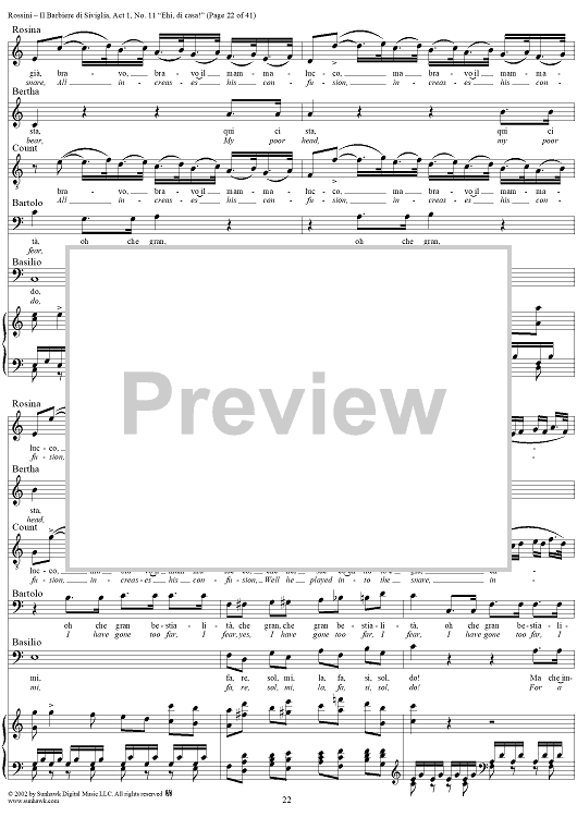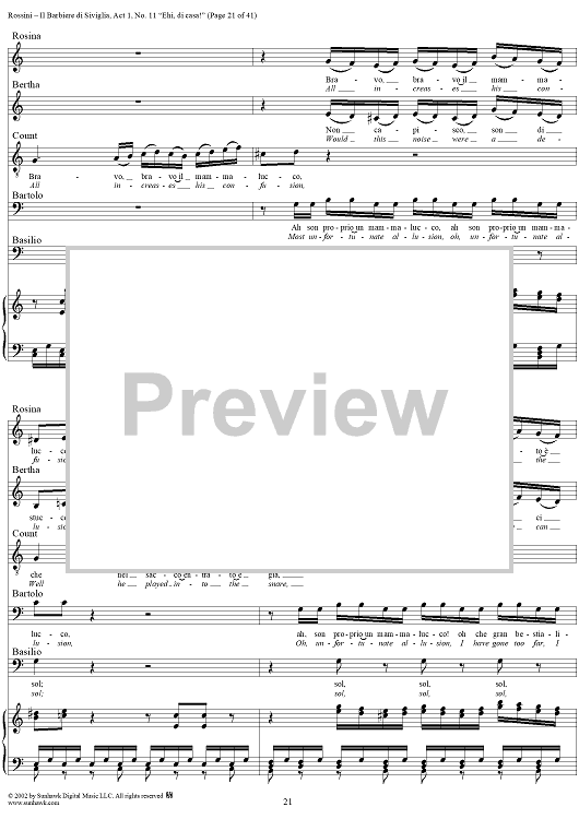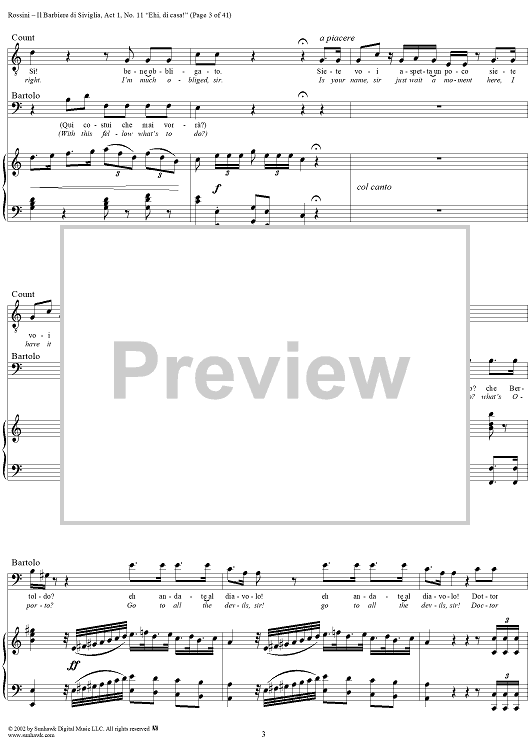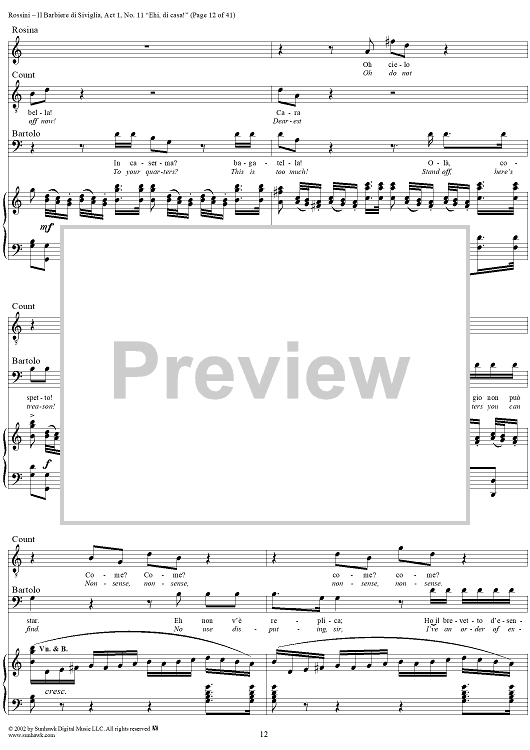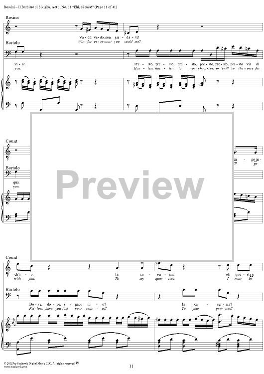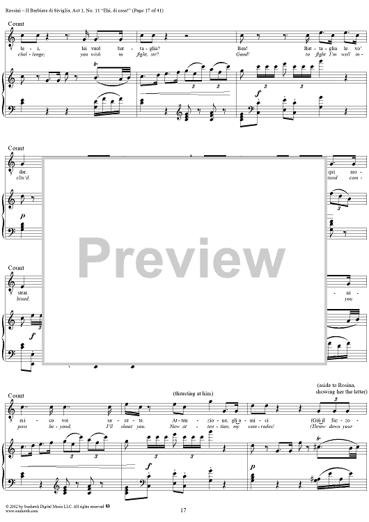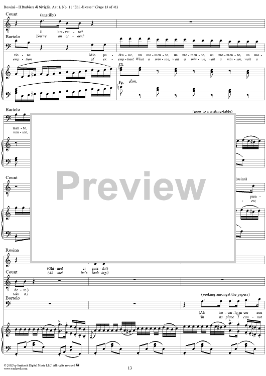 Digital Sheet Music for Finale 1: Ehi, di casa!, No. 11 from "Il Barbiere di Siviglia" by Gioachino Rossini, Cesare Sterbini scored for Voice/Piano; id:290605