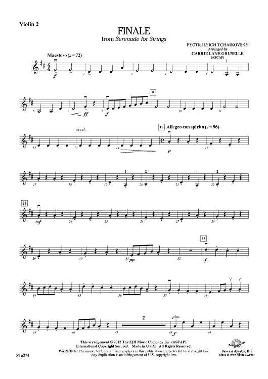 Digital Sheet Music for Finale from Serenade for Strings - Violin 2 (Viola T.C.) by Peter Ilyich Tchaikovsky, Carrie Lane Gruselle scored for String Orchestra; id:432004