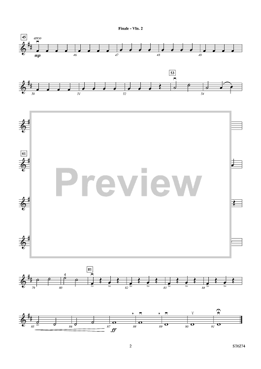 "Finale from Serenade for Strings - Violin 2 (Viola T.C.)" Sheet Music by Peter Ilyich Tchaikovsky