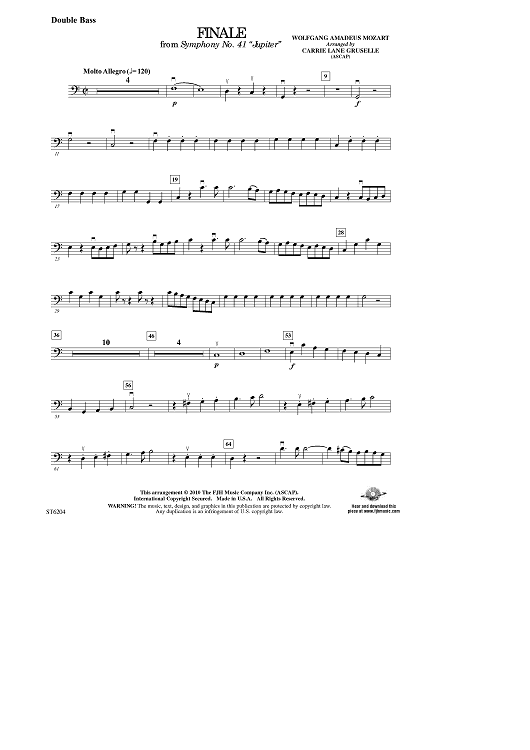 Digital Sheet Music for Finale from Symphony No. 41 “Jupiter” - Double Bass by Wolfgang Amadeus Mozart, Carrie Lane Gruselle scored for Orchestra; id:411509