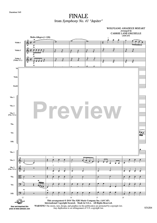 Digital Sheet Music for Finale from Symphony No. 41 “Jupiter” - Score by Wolfgang Amadeus Mozart, Carrie Lane Gruselle scored for Orchestra; id:411503