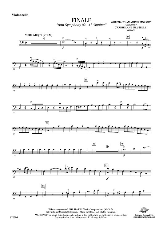Digital Sheet Music for Finale from Symphony No. 41 “Jupiter” - Violoncello by Wolfgang Amadeus Mozart, Carrie Lane Gruselle scored for Orchestra; id:411508