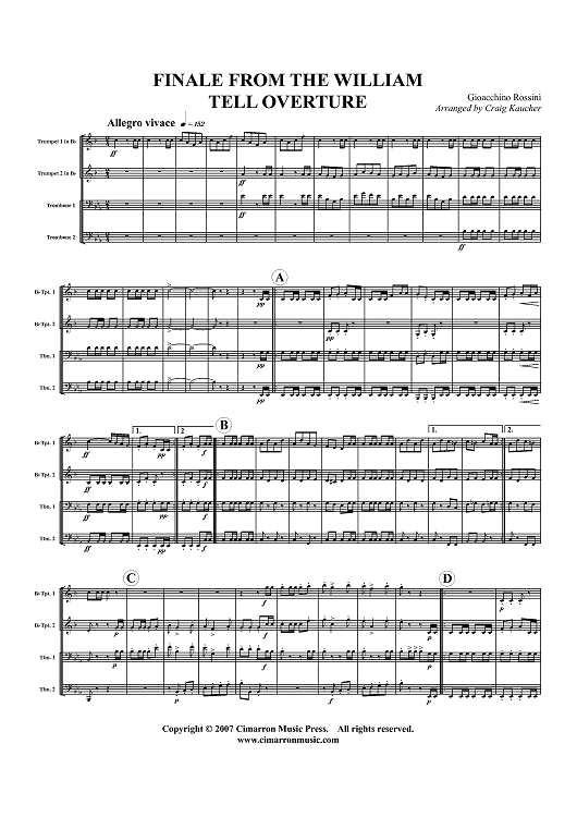 Digital Sheet Music for Finale from The William Tell Overture - Score by Gioachino Rossini, Craig Kaucher scored for Brass Quartet; id:413873