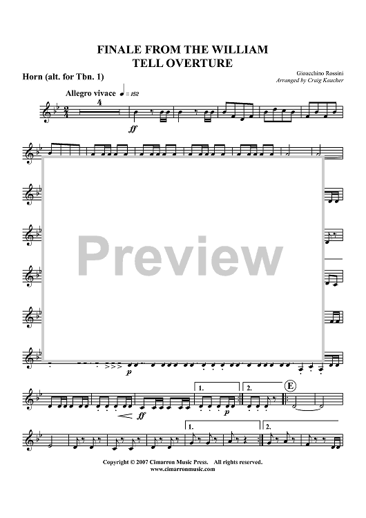 Digital Sheet Music for Finale from The William Tell Overture - Trombone 1 (opt. F Horn) by Gioachino Rossini, Craig Kaucher scored for Brass Quartet; id:413876