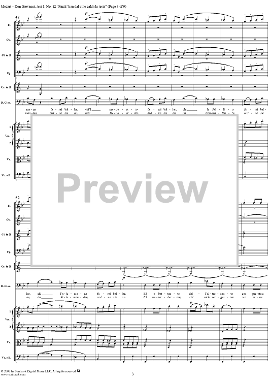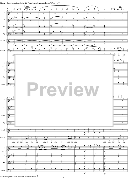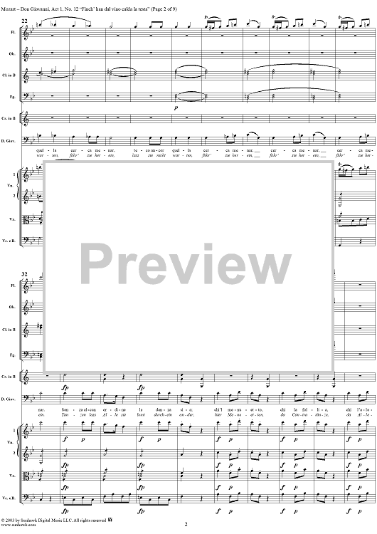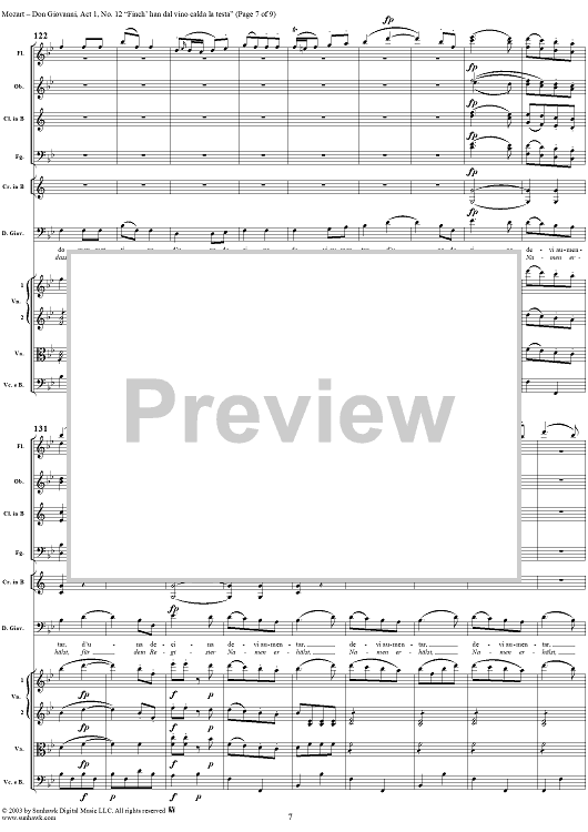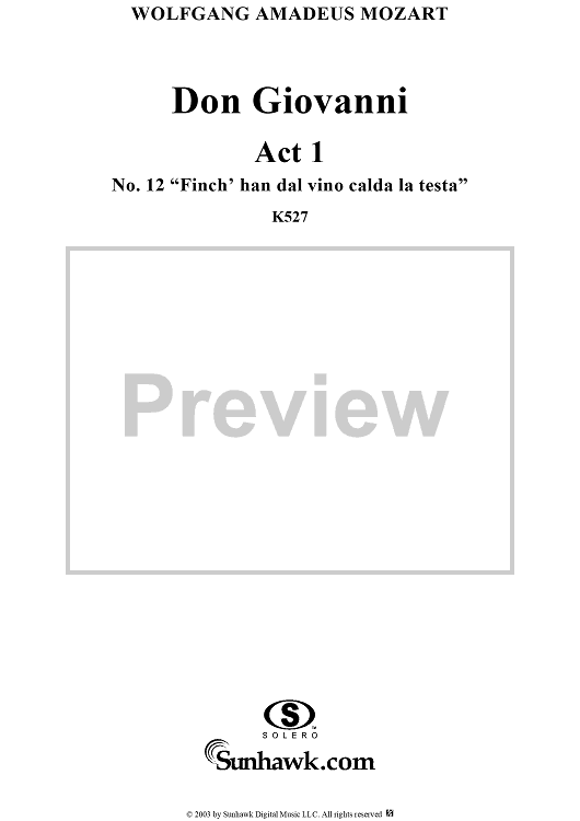 Digital Sheet Music for "Finch' han dal vino calda la testa", No. 12 from "Don Giovanni", Act 1, K527 - Full Score by Wolfgang Amadeus Mozart scored for Voice and Orchestra; id:291916
