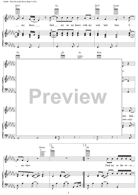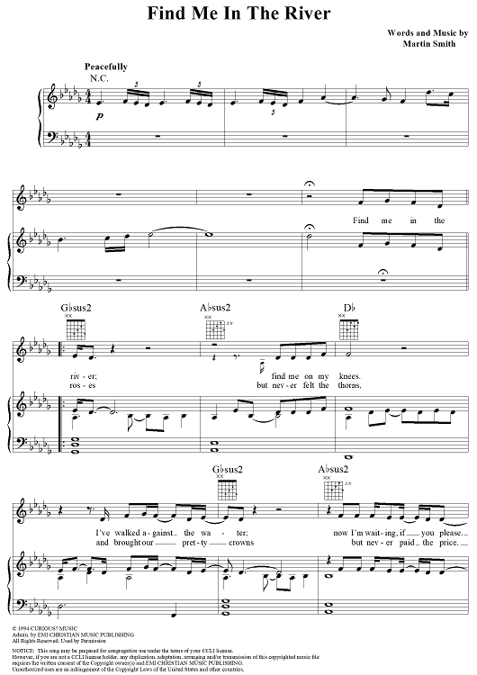 Digital Sheet Music for Find Me in the River by Martin Smith, Delirious? scored for Piano/Vocal/Chords; id:119506