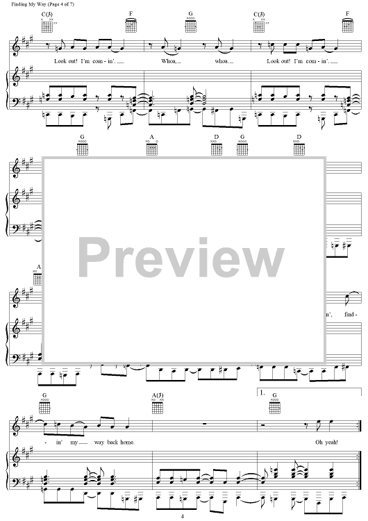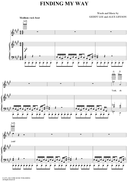 Digital Sheet Music for Finding My Way by Rush, Geddy Lee, Alex Lifeson scored for Piano/Vocal/Chords; id:124268