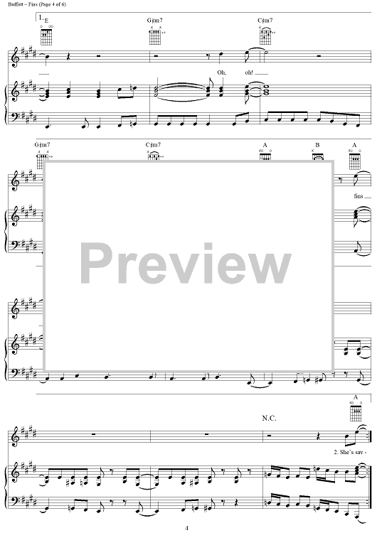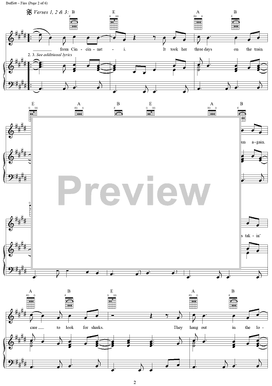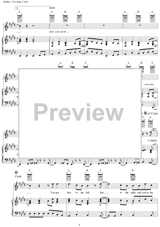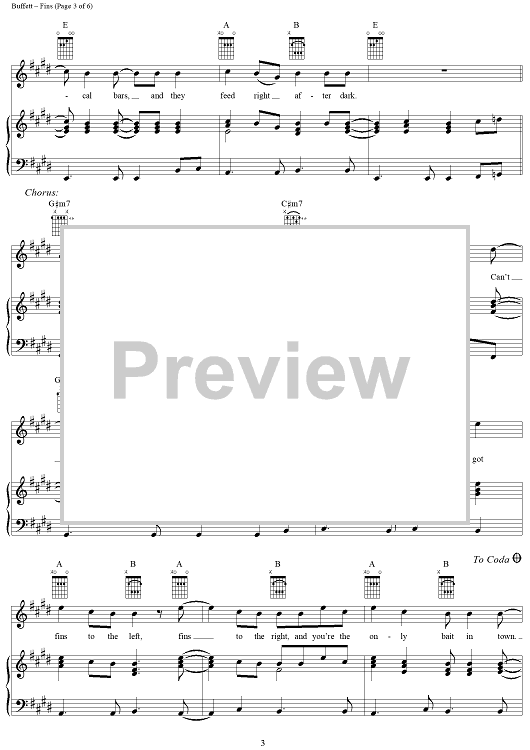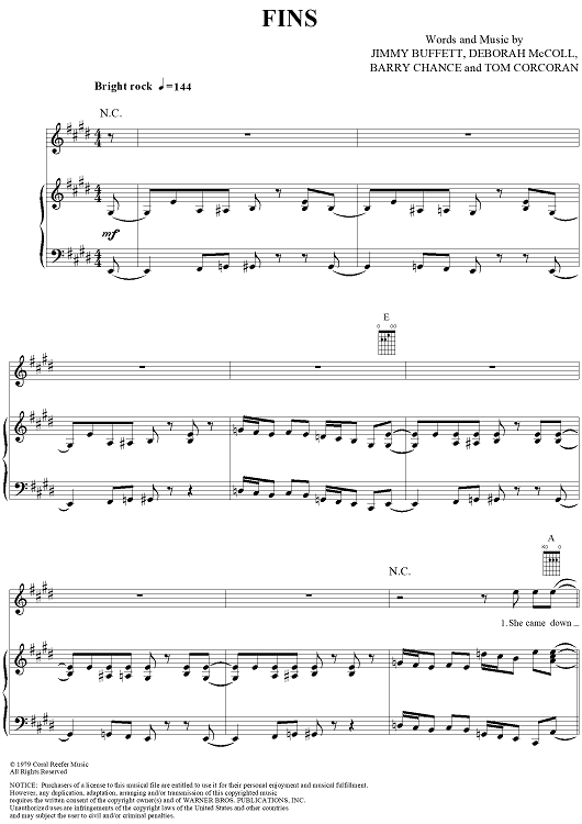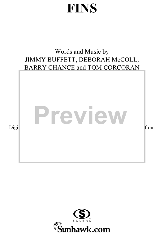 Digital Sheet Music for Fins by Deborah McColl, Barry Chance, Tom Corcoran, Jimmy Buffett scored for Piano/Vocal/Chords; id:304268