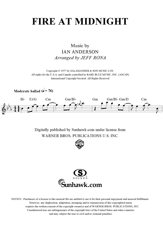 Digital Sheet Music for Fire At Midnight by Ian Anderson, Jeff Rona, Jethro Tull scored for Flute Solo; id:234760