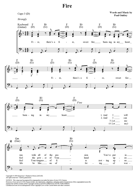 Digital Sheet Music for Fire by , Paul Oakley scored for Piano/Vocal/Chords; id:109389