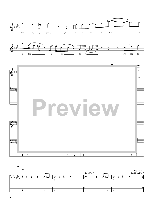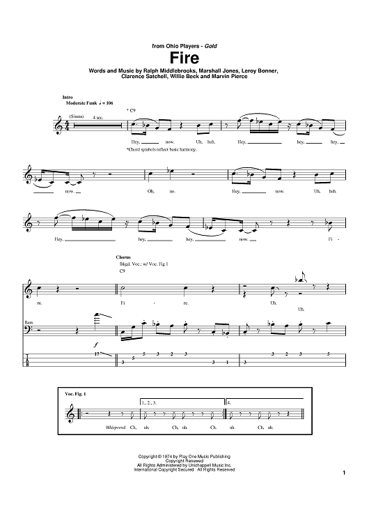 Digital Sheet Music for Fire by Ralph Middlebrooks, Marshall Jones, Leroy Bonner, Clarence Satchell, Willie Beck, Ohio Players, Marvin Pierce scored for Bass Tab; id:390137