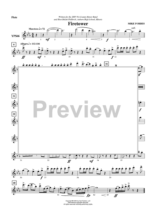Digital Sheet Music for Firetower - Flute by Mike Forbes scored for Concert Band; id:407824
