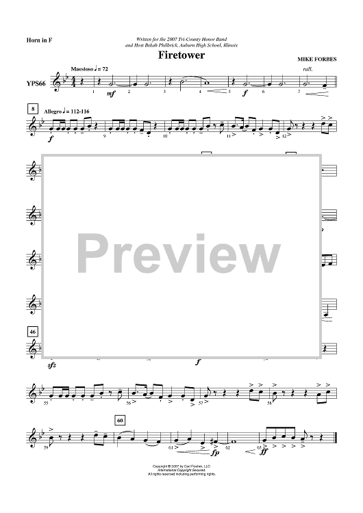 "Firetower - Horn in F" Sheet Music by Mike Forbes