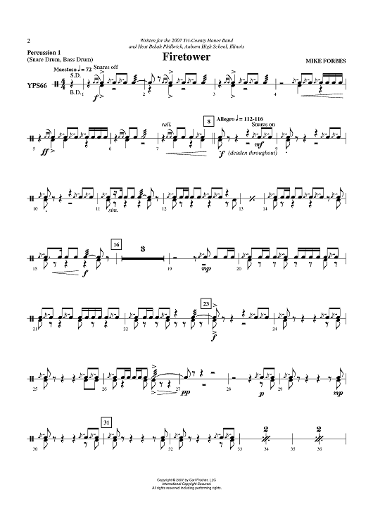 Digital Sheet Music for Firetower - Percussion 1 by Mike Forbes scored for Concert Band; id:407842