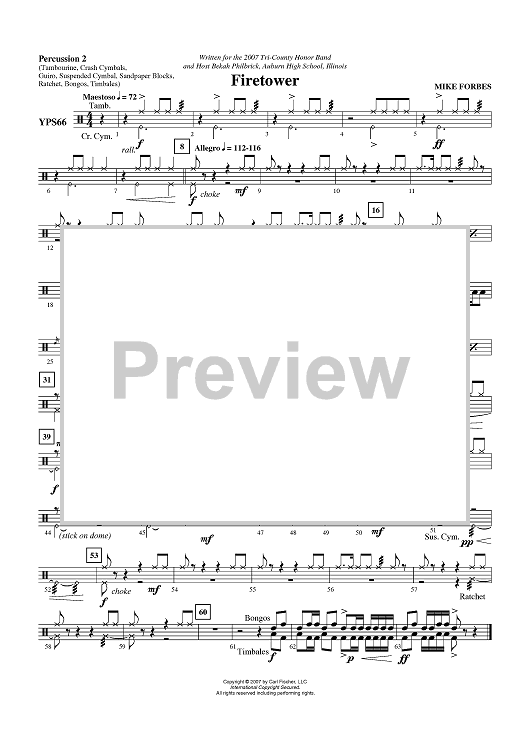 Digital Sheet Music for Firetower - Percussion 2 by Mike Forbes scored for Concert Band; id:407843