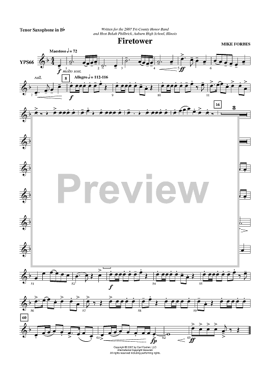 Digital Sheet Music for Firetower - Tenor Sax by Mike Forbes scored for Concert Band; id:407831