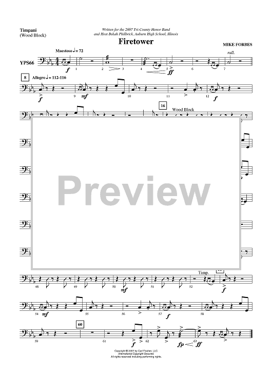 Digital Sheet Music for Firetower - Timpani by Mike Forbes scored for Concert Band; id:407841