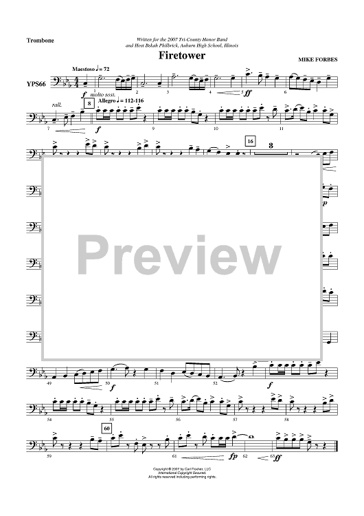 Digital Sheet Music for Firetower - Trombone by Mike Forbes scored for Concert Band; id:407836