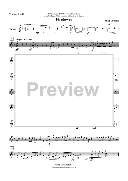 Digital Sheet Music for Firetower - Trumpet 1 in B-flat by Mike Forbes scored for Concert Band; id:407833