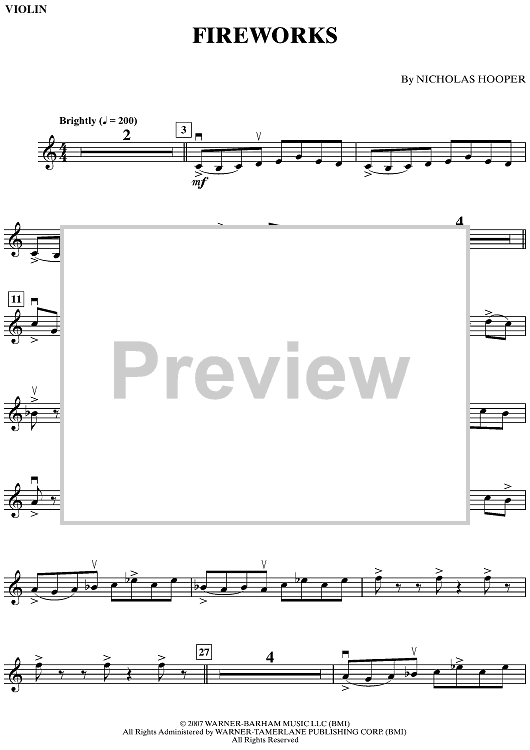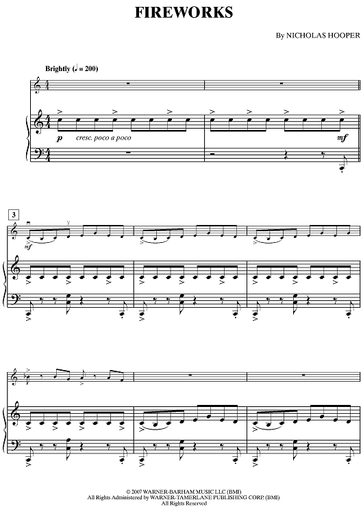 Digital Sheet Music for Fireworks by Nicholas Hooper scored for Violin/Piano; id:498041