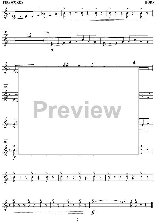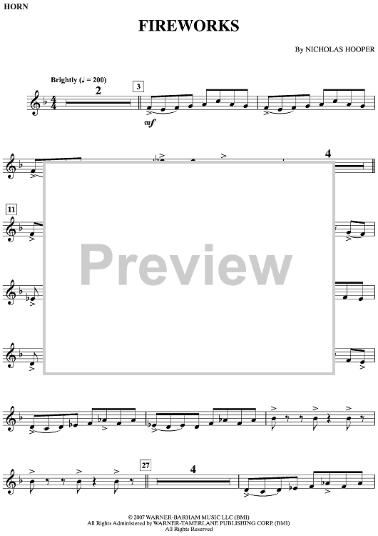 Digital Sheet Music for Fireworks by Nicholas Hooper scored for Horn/Piano; id:498135