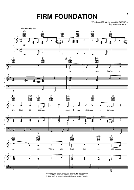 Digital Sheet Music for Firm Foundation by Nancy Gordon, Jamie Harvill scored for Piano/Vocal/Chords; id:371343