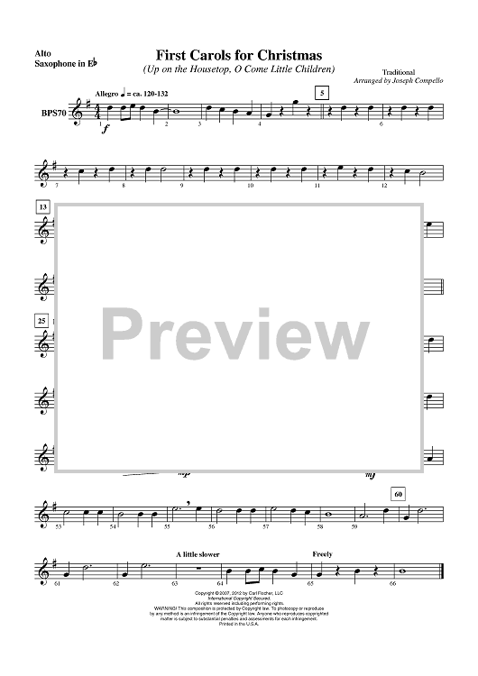 Digital Sheet Music for First Carols for Christmas - Alto Sax by Traditional, Joseph Compello scored for Concert Band; id:430373