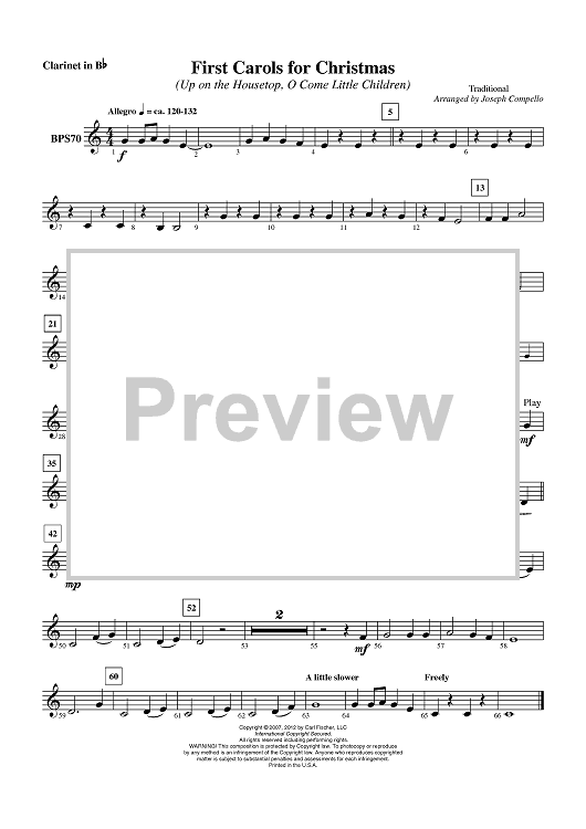 Digital Sheet Music for First Carols for Christmas - Clarinet in Bb by Traditional, Joseph Compello scored for Concert Band; id:430371