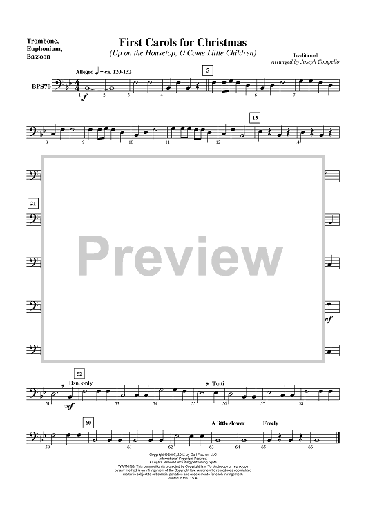 Digital Sheet Music for First Carols for Christmas - Trombone/Euphonium BC/Bassoon by Traditional, Joseph Compello scored for Concert Band; id:430378