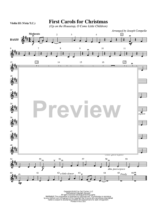 Digital Sheet Music for First Carols For Christmas - Violin 3 by Joseph Compello scored for Orchestra; id:408058