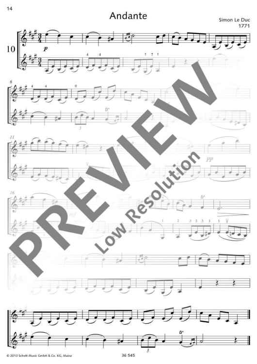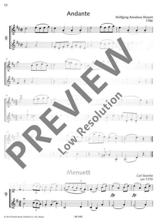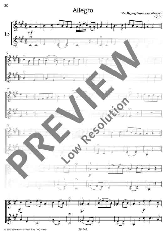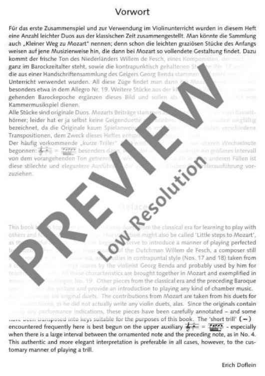 Für frohes Zusammenspiel und zur Verwendung im Violinunterricht wurden in diesem Heft eine Anzahl leichter Duos aus der klassischen Zeit zusammengestellt. Man könnte die Sammlung auch "Kleiner Weg zu Mozart" nennen; denn schon die leichten graziösen Stücke des Anfangs weisen auf jene Musizierweise, die dann bei Mozart so vollendete Gestaltung findet.