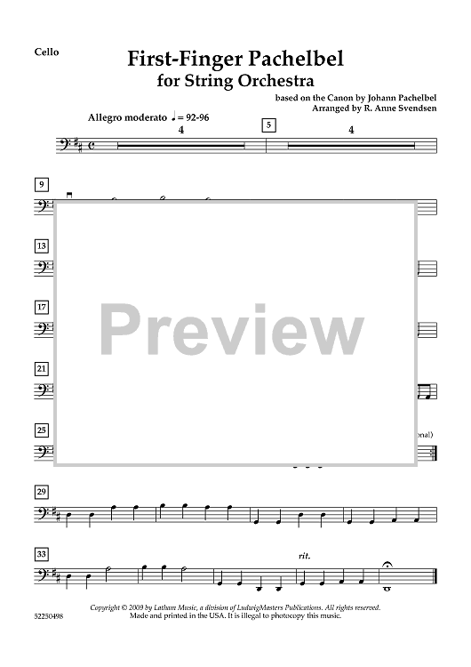 Digital Sheet Music for First-Finger Pachelbel - Cello by Johann Pachelbel, R. Anne Svendsen scored for String Orchestra; id:459840