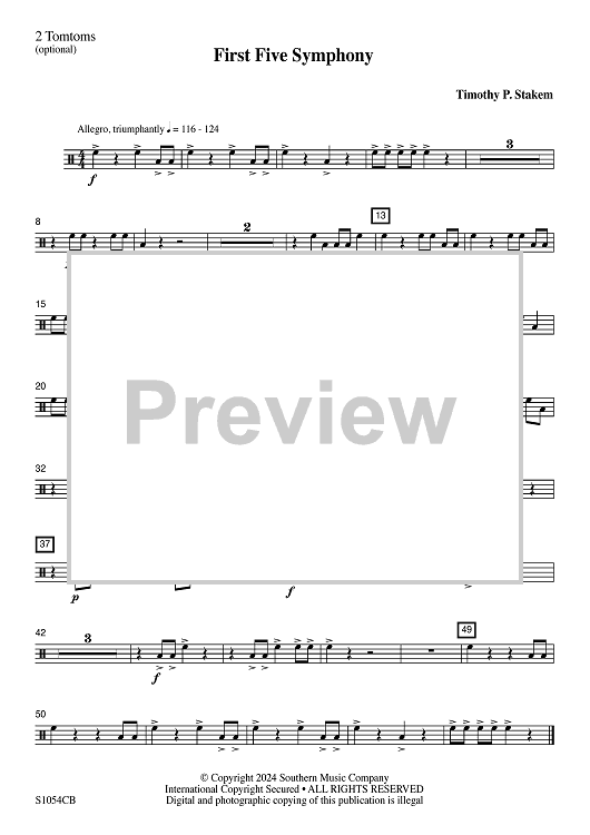 Digital Sheet Music for First Five Symphony - 2 Tomtoms by Timothy P. Stakem scored for Concert Band; id:506502