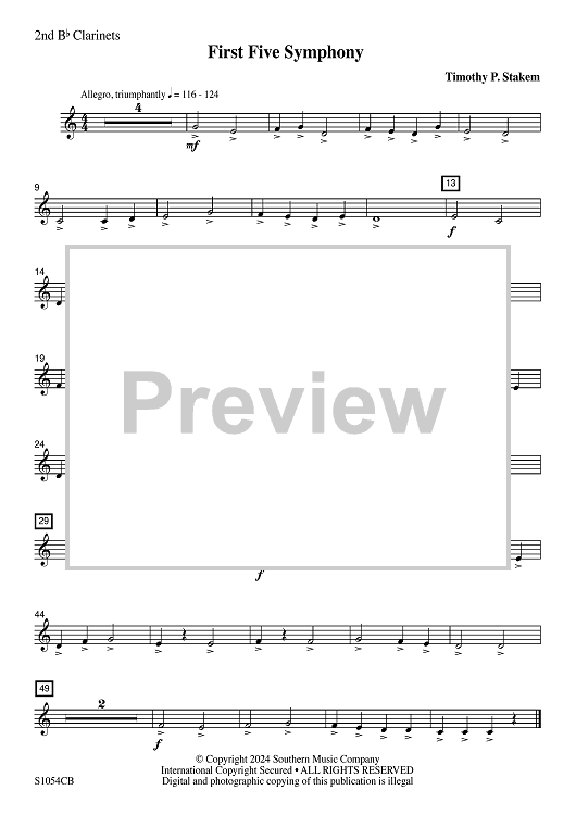 "First Five Symphony - 2nd Bb Clarinets" Sheet Music by Timothy P. Stakem