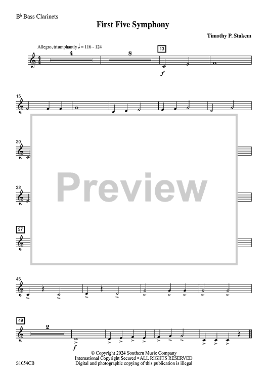 "First Five Symphony - Bb Bass Clarinets" Sheet Music by Timothy P. Stakem