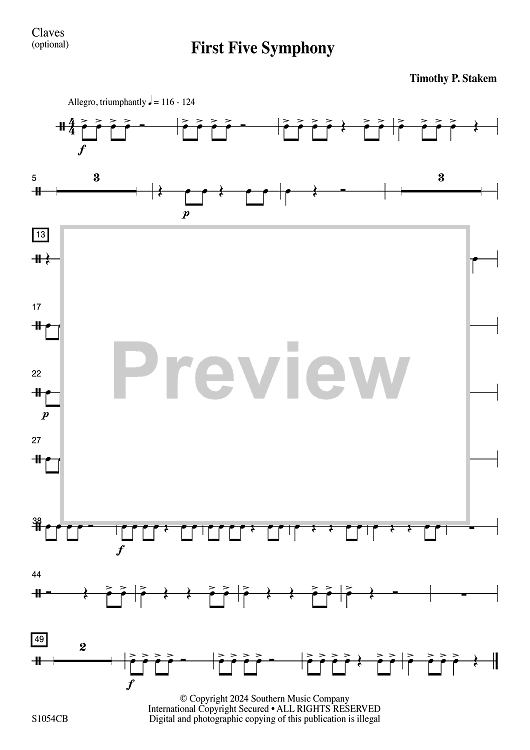 "First Five Symphony - Claves" Sheet Music by Timothy P. Stakem