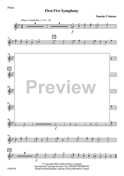 "First Five Symphony - Flutes" Sheet Music by Timothy P. Stakem