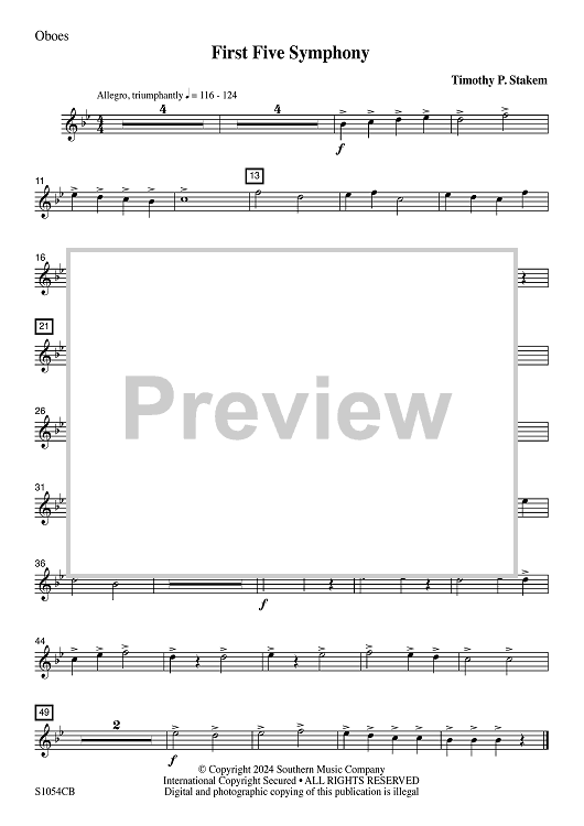 "First Five Symphony - Oboes" Sheet Music by Timothy P. Stakem
